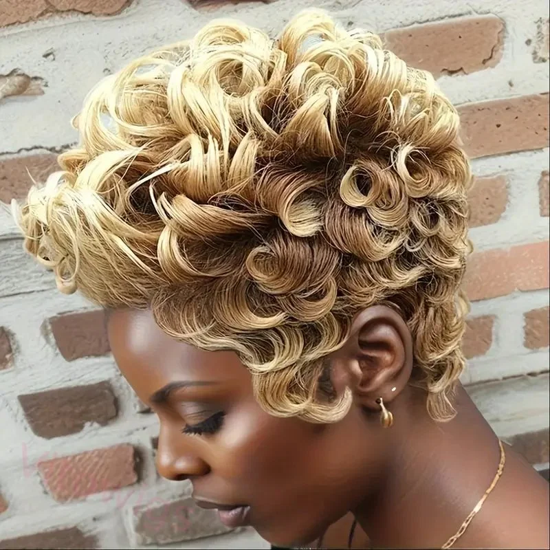 Blonde Short Curly Hair Wigs Women Glueless Pixie Cut Wigs