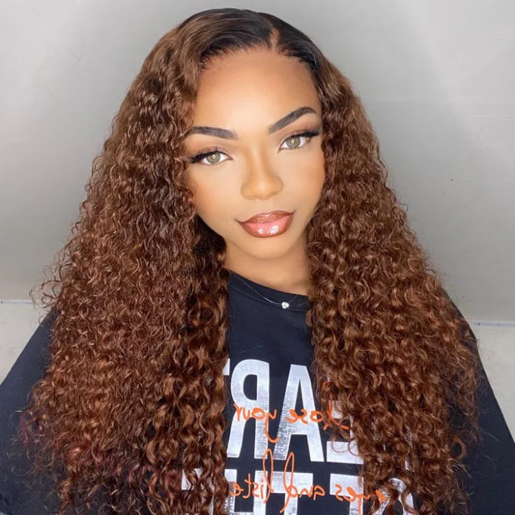 Glueless Black Gradient Brown Brazilian Water Wave Curly Wigs