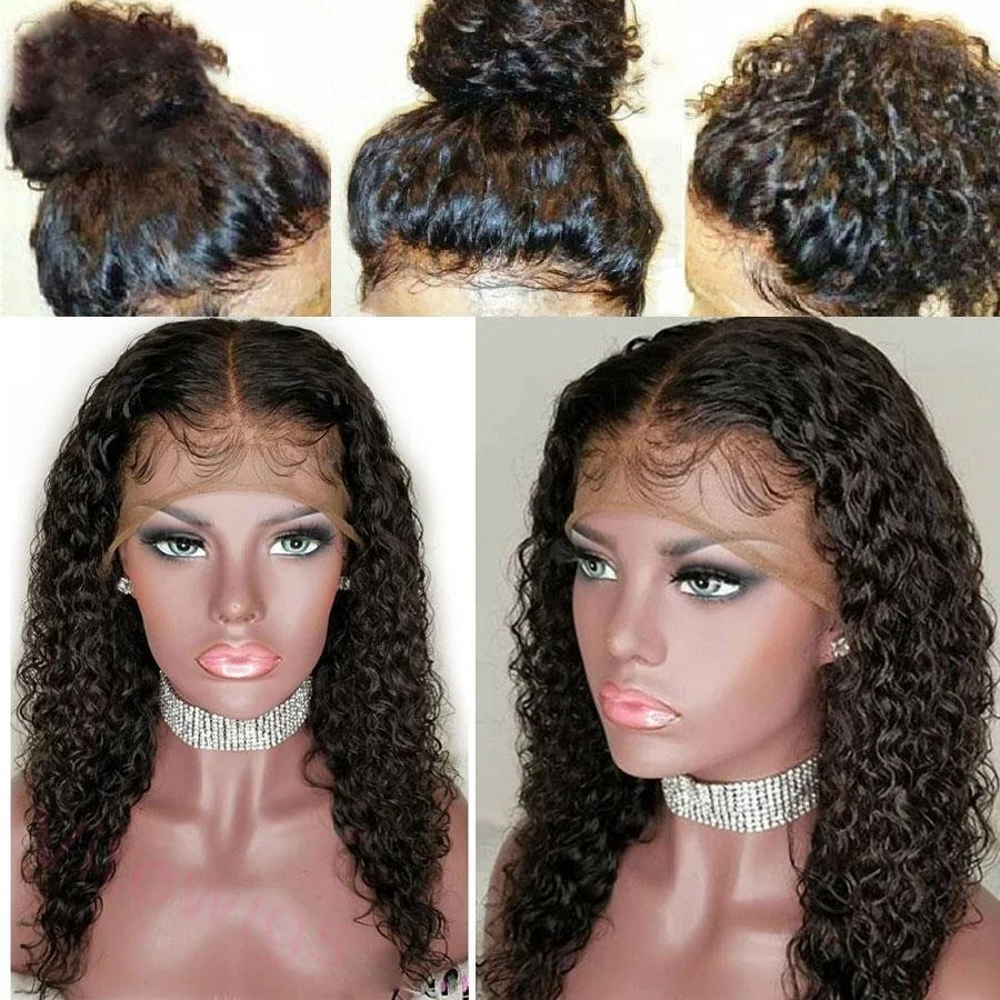 Glueless Brazilian Natural Black Water Wave Long Curly Wig