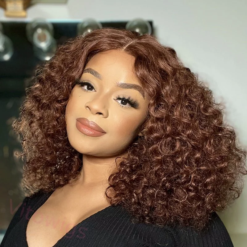 Glueless Brown Brazilian Water Wave Curly Wig