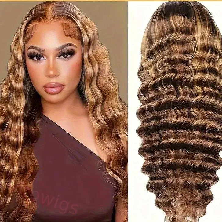 Hightlight Brown Mixed Blonde Body Wave Wig Long Hair